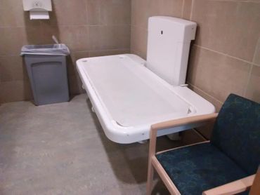 Wall-mounted, fold away, push button fold up, ability to lower and raise for easy transfer. Also offered as a manual fold away option, electric to raise and lower.